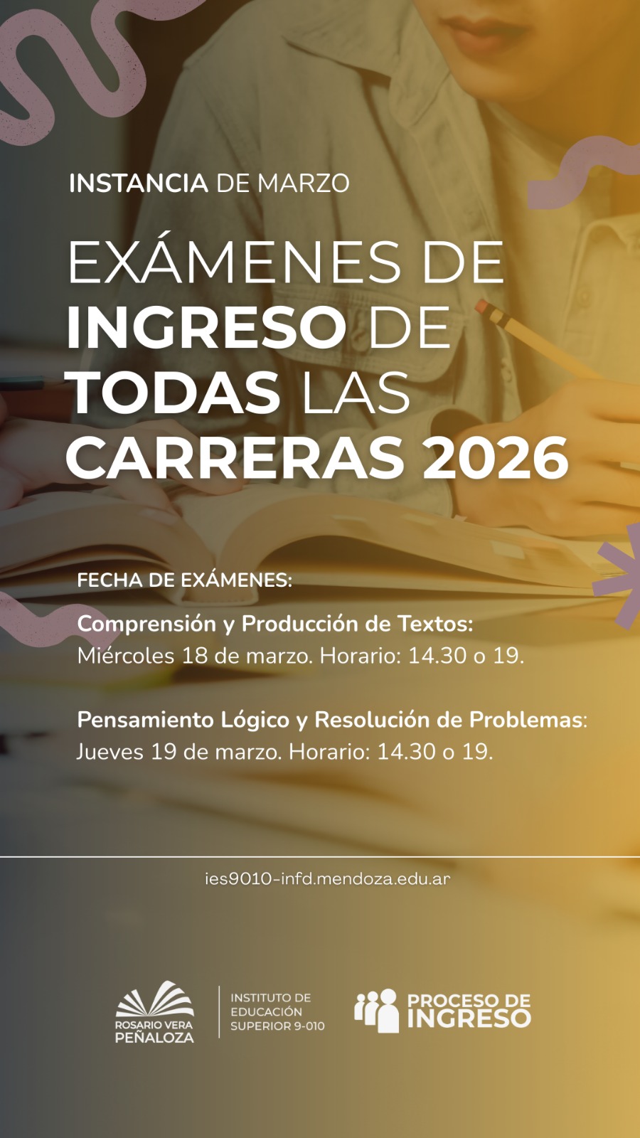 Exámenes juridiccionales de ingreso para todas las carreras 2026.