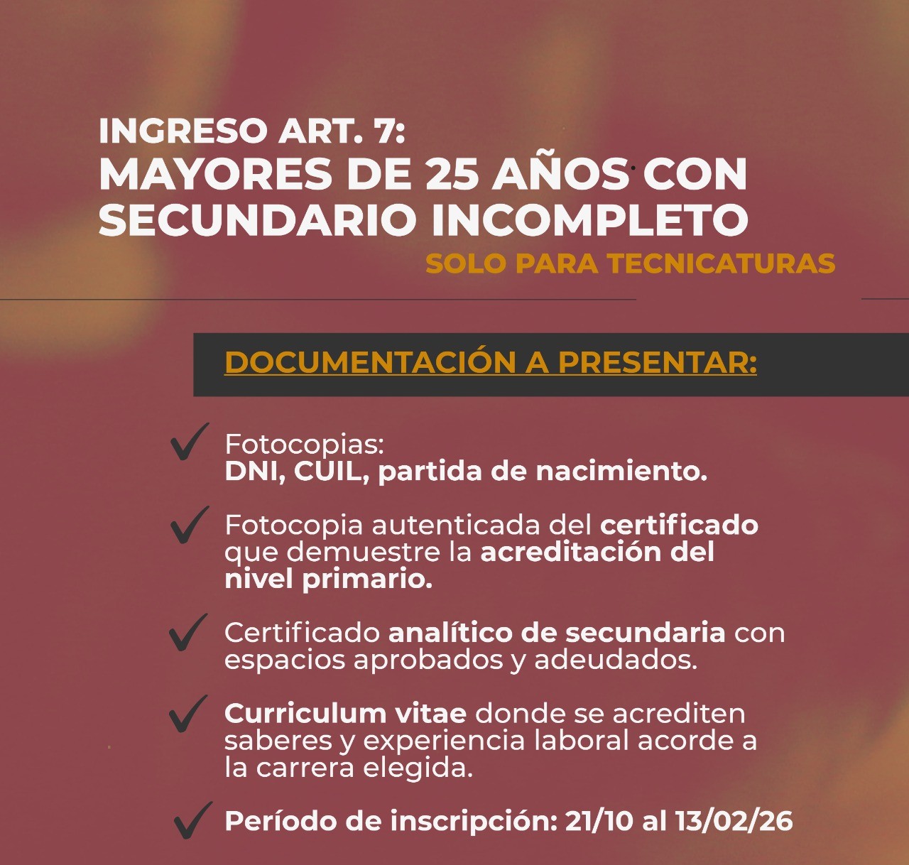 ¿Querés estudiar pero tenés el secundario incompleto?